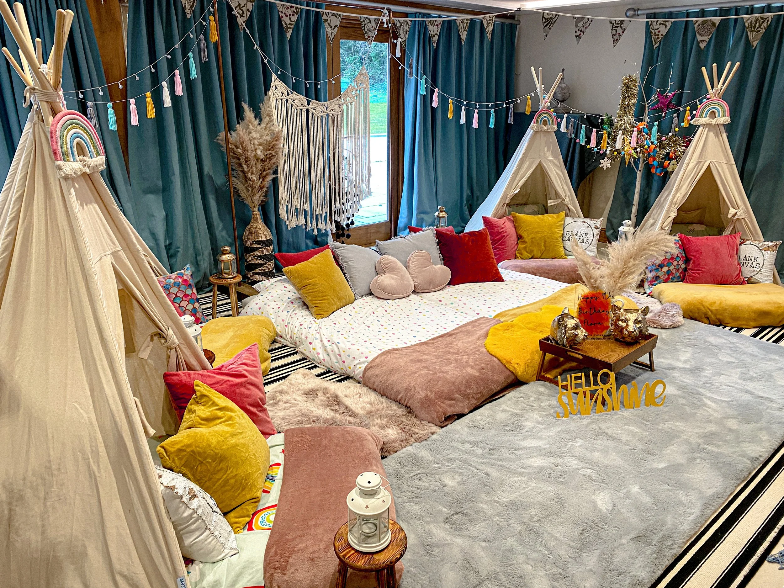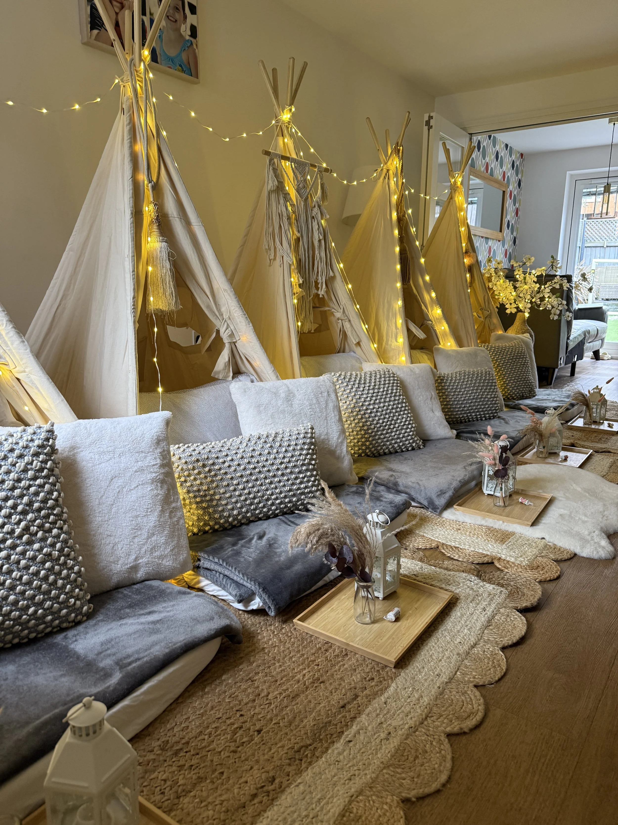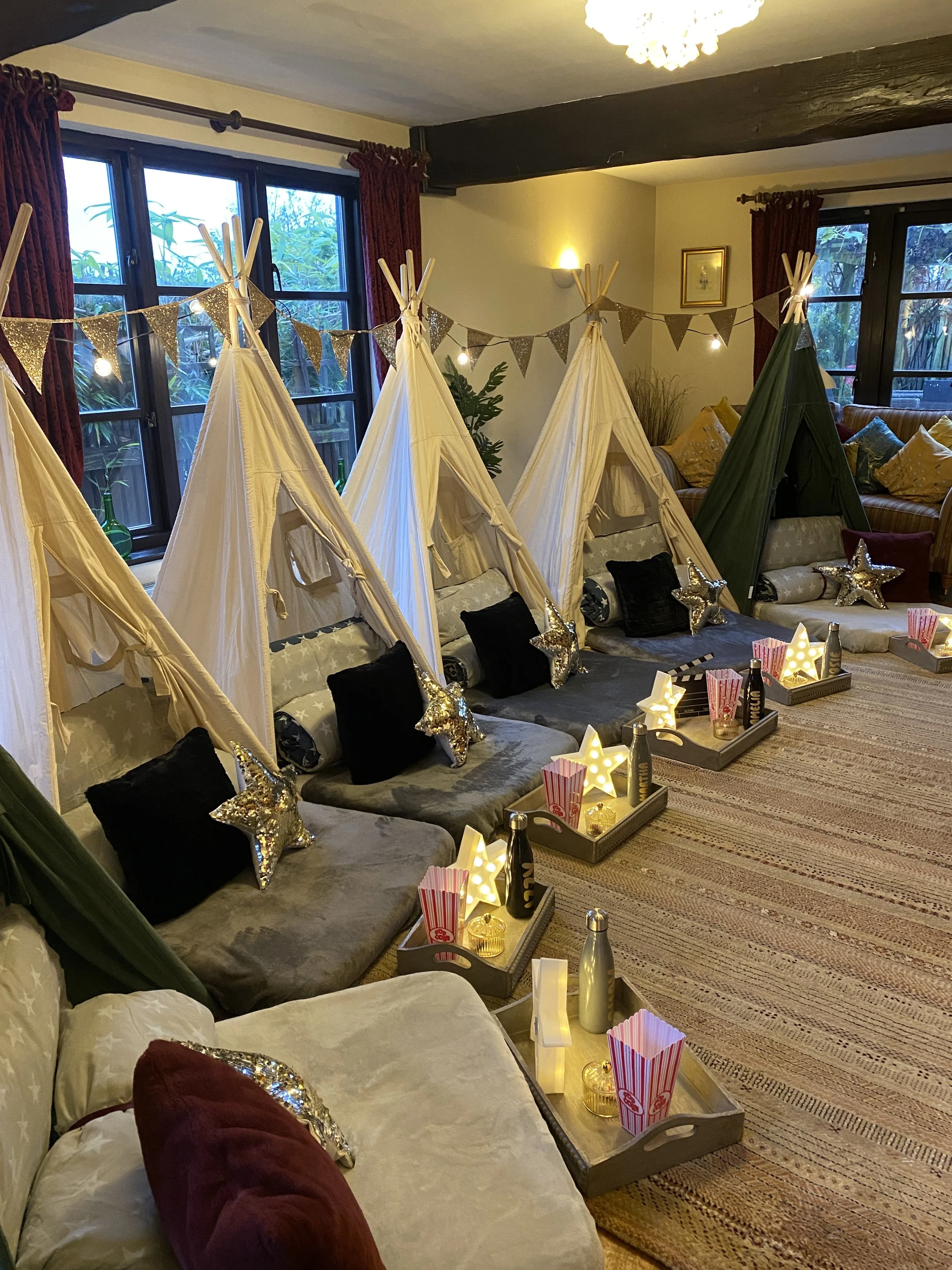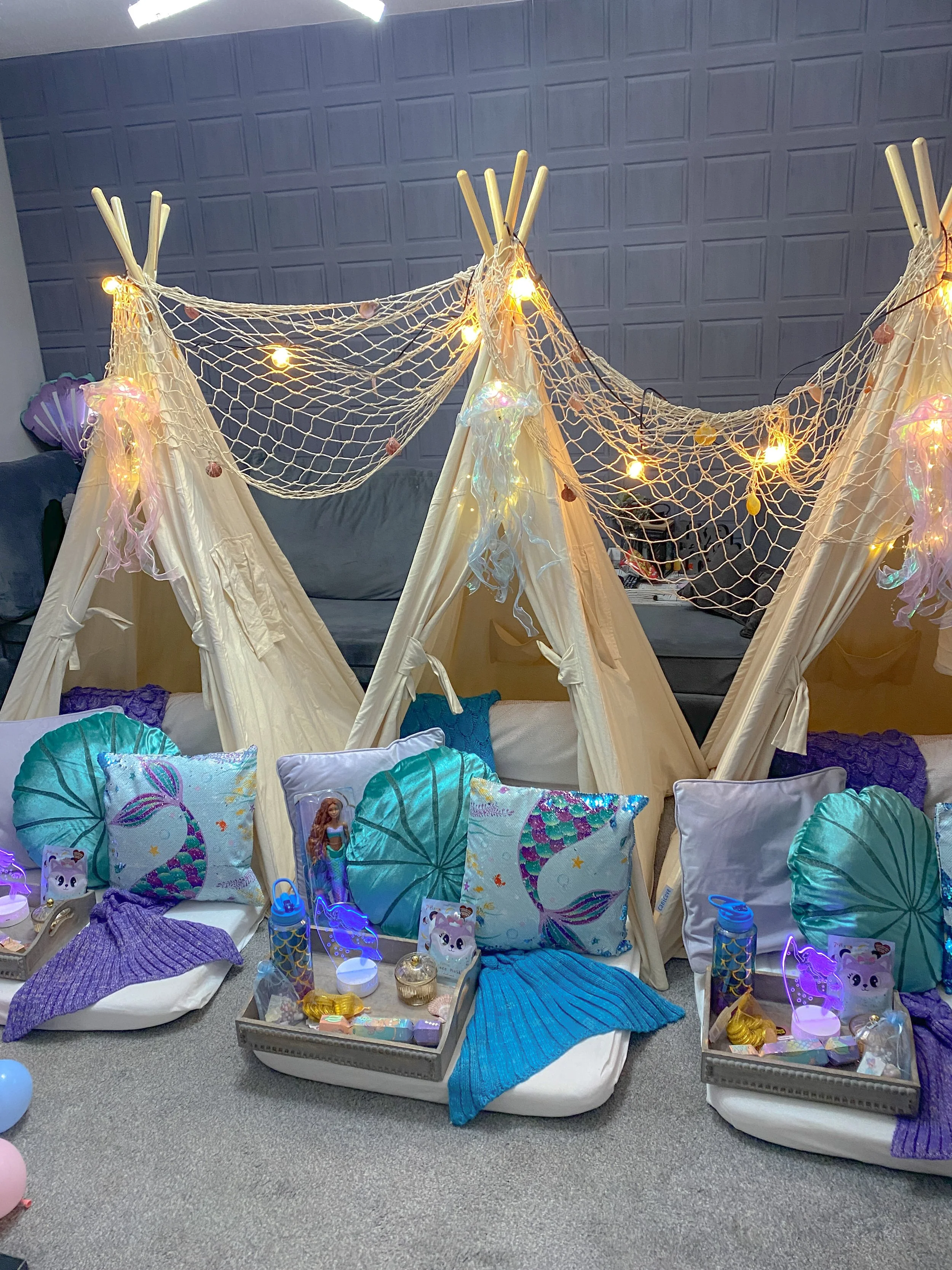 Drop off and collection of Teepees with foam mattress, bed tray & decor in your theme of choice - Set up and pack down your own sleepover set up.