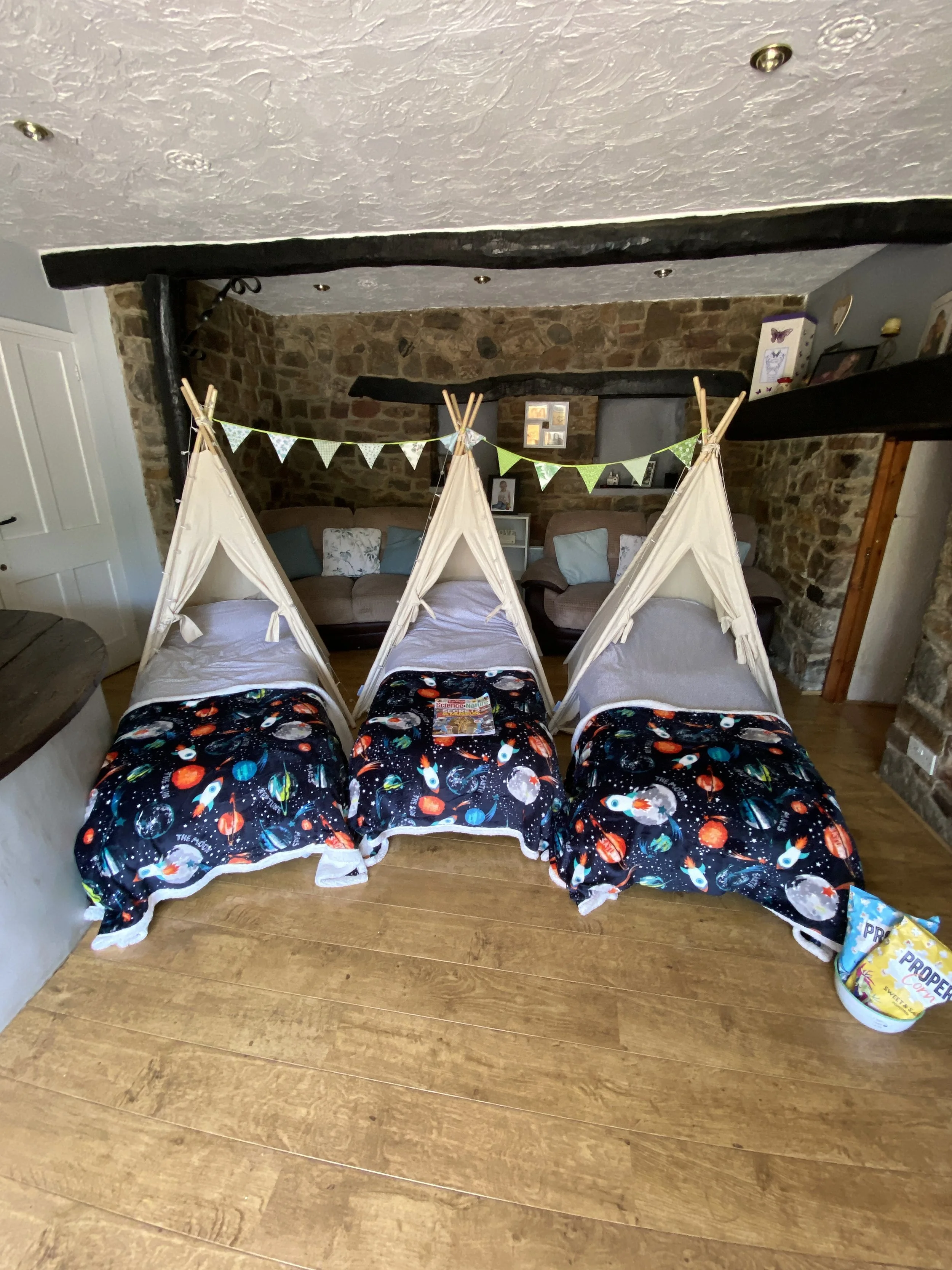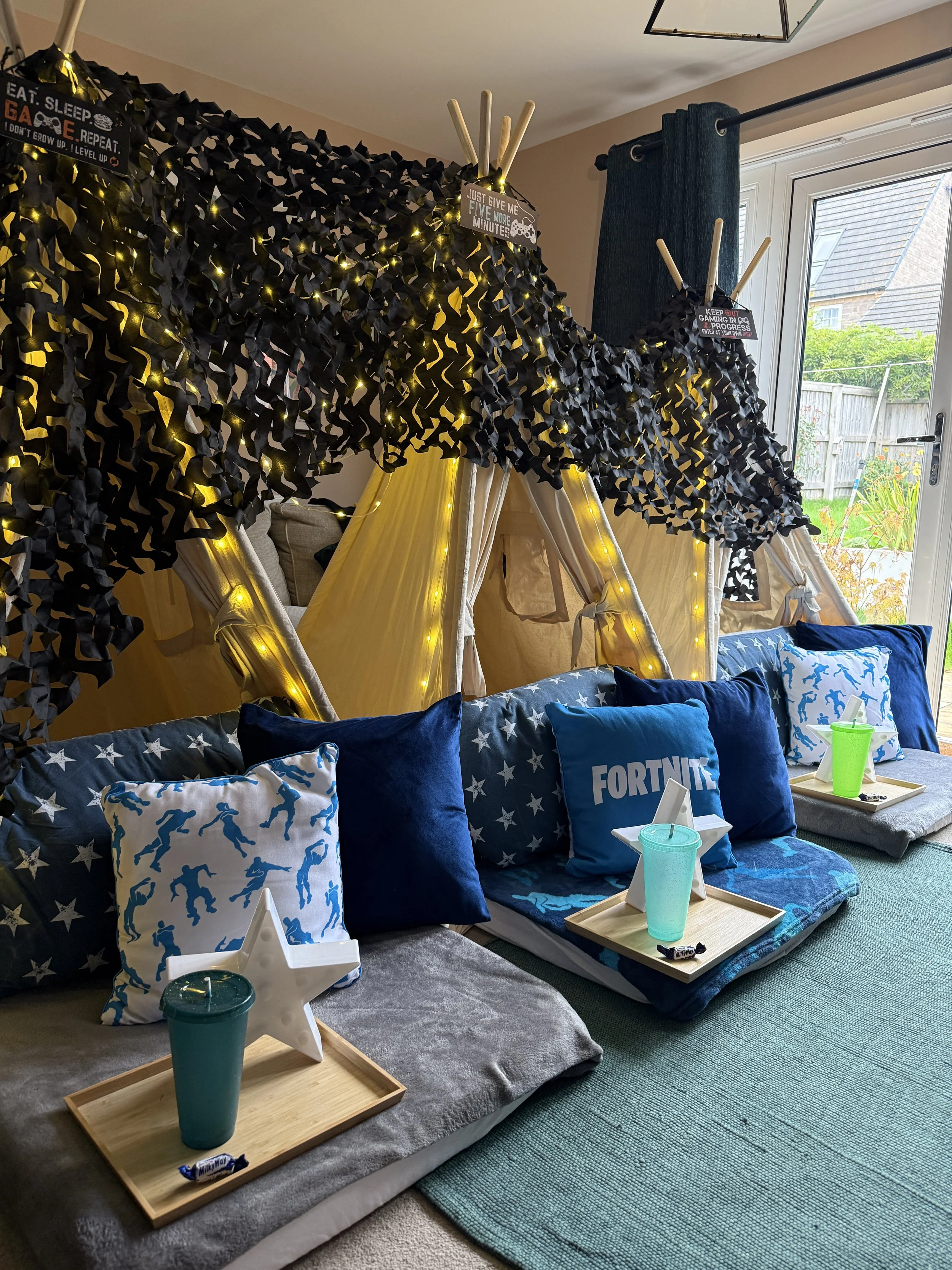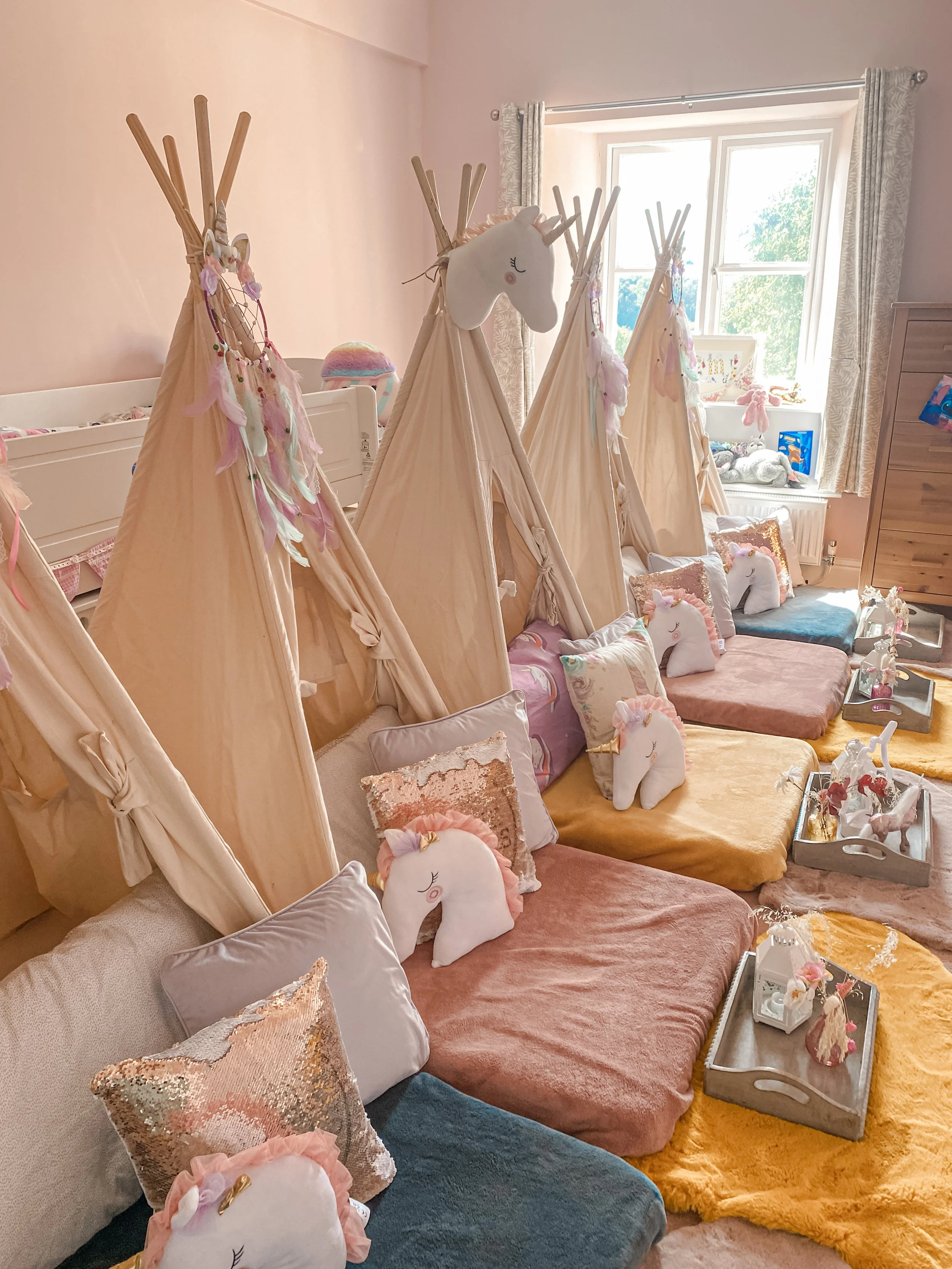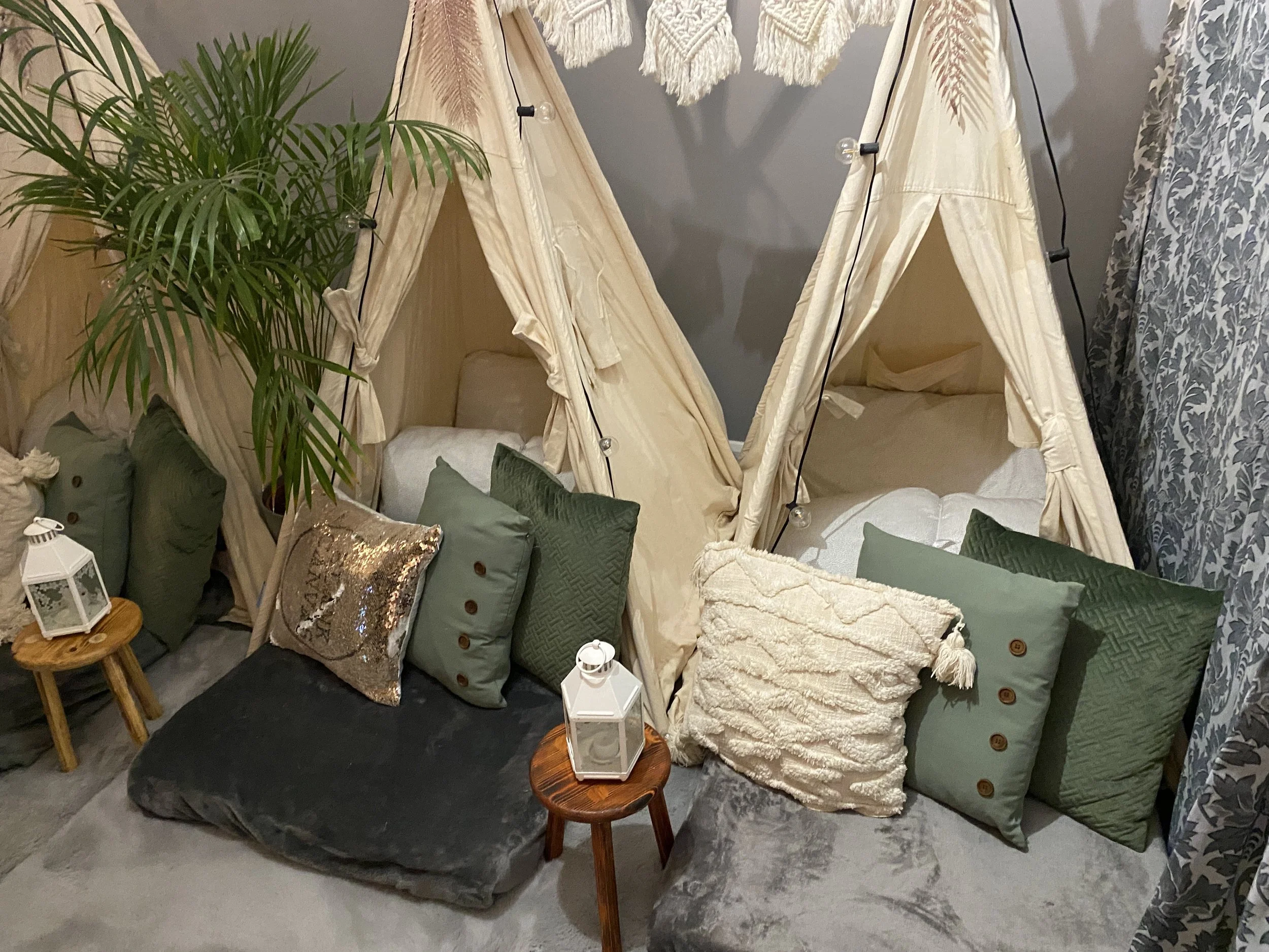 Drop off and collection of Teepees with foam mattress, bed tray & decor in your theme of choice - Set up and pack down your own sleepover set up.