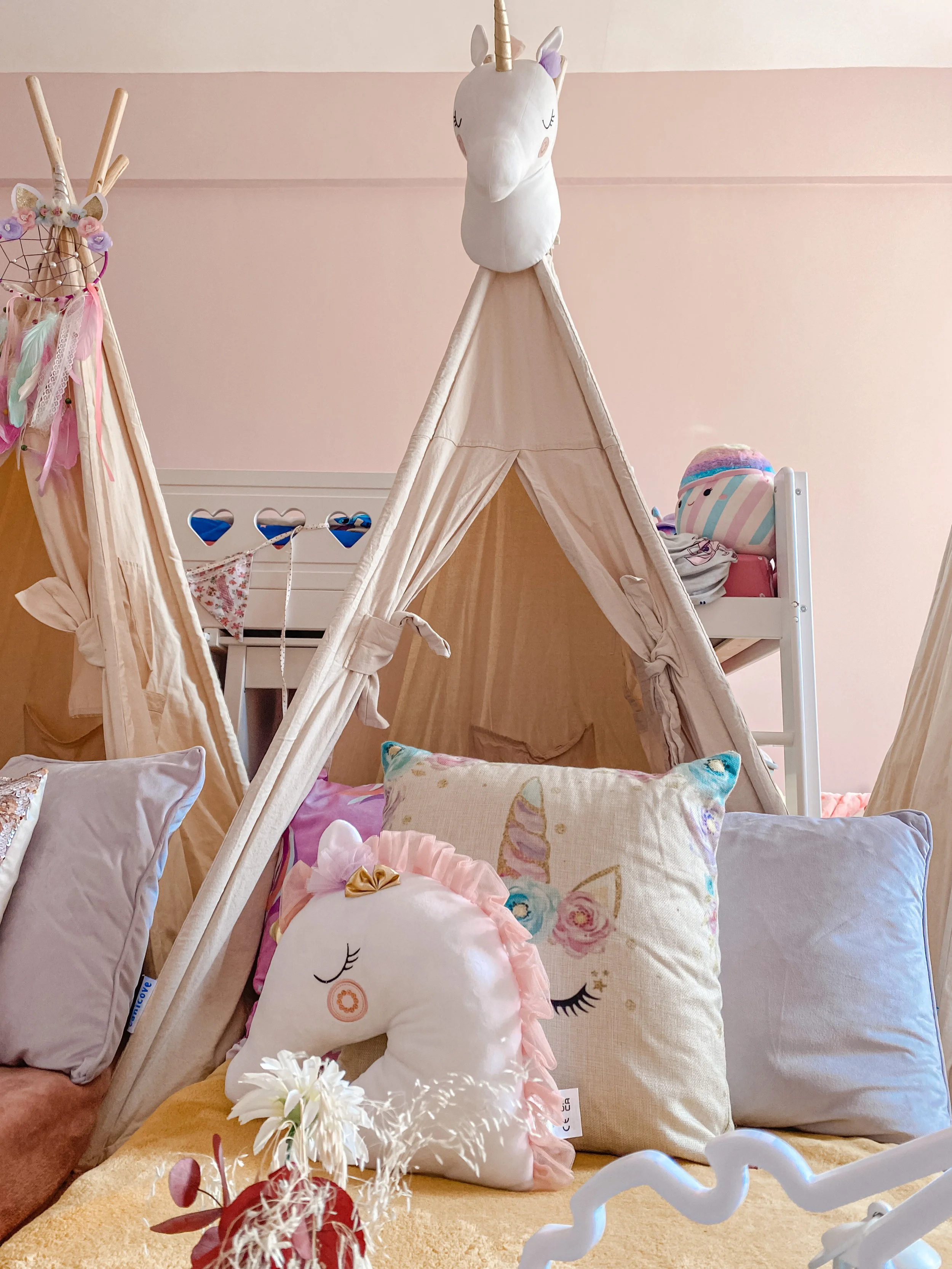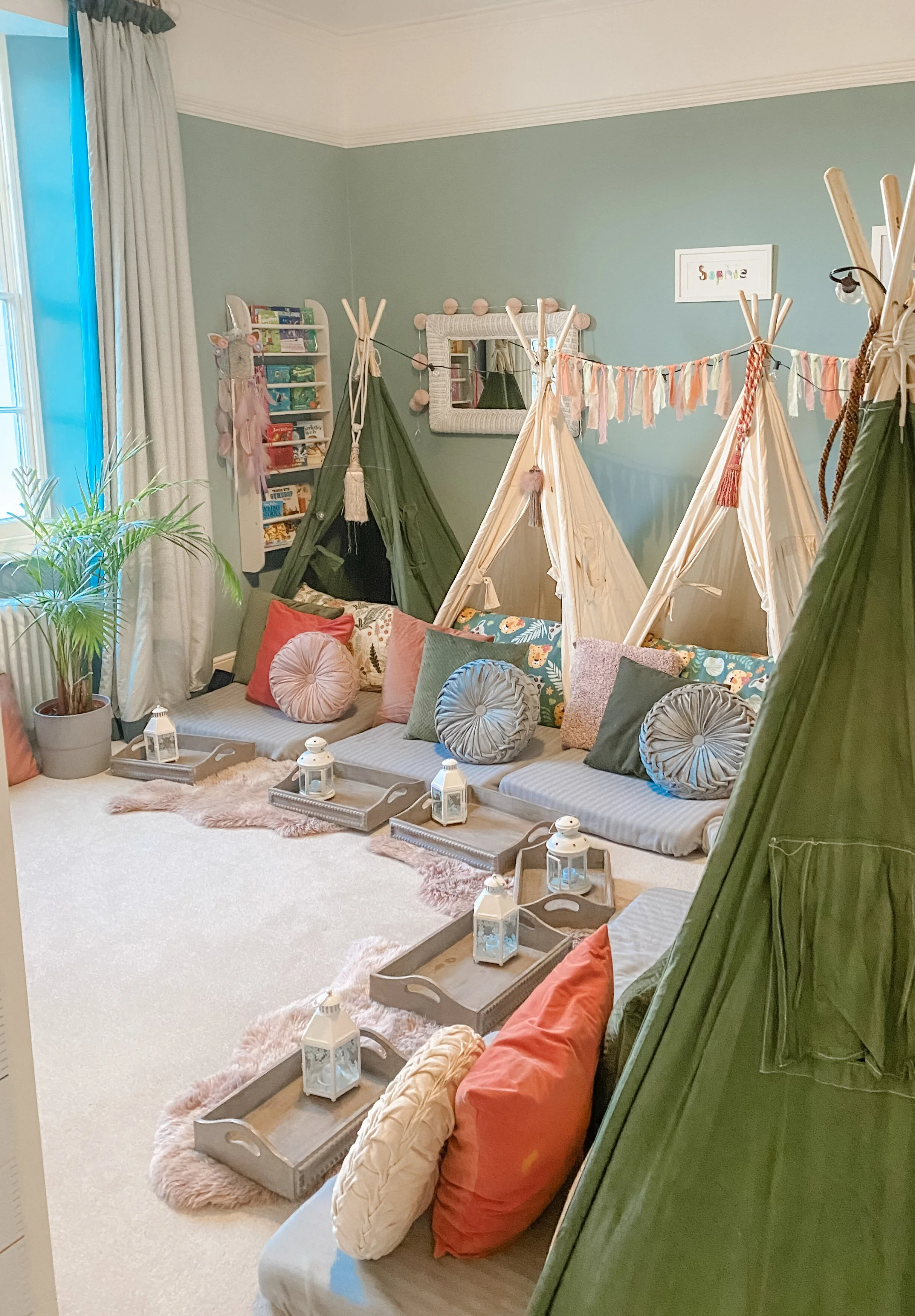 Full Set up of Teepees with foam mattress, blanket, bed tray & full decor in your theme of choice.
