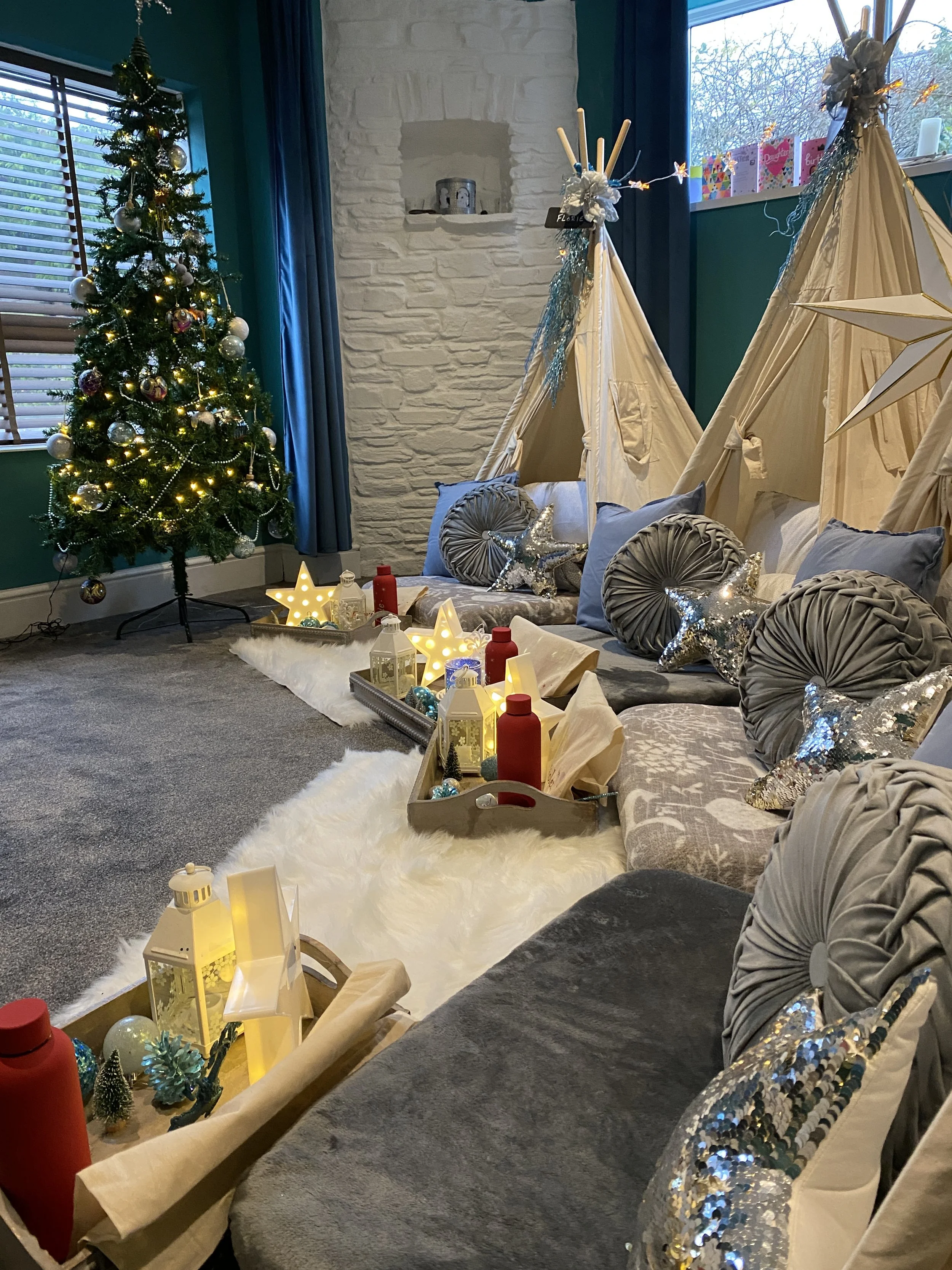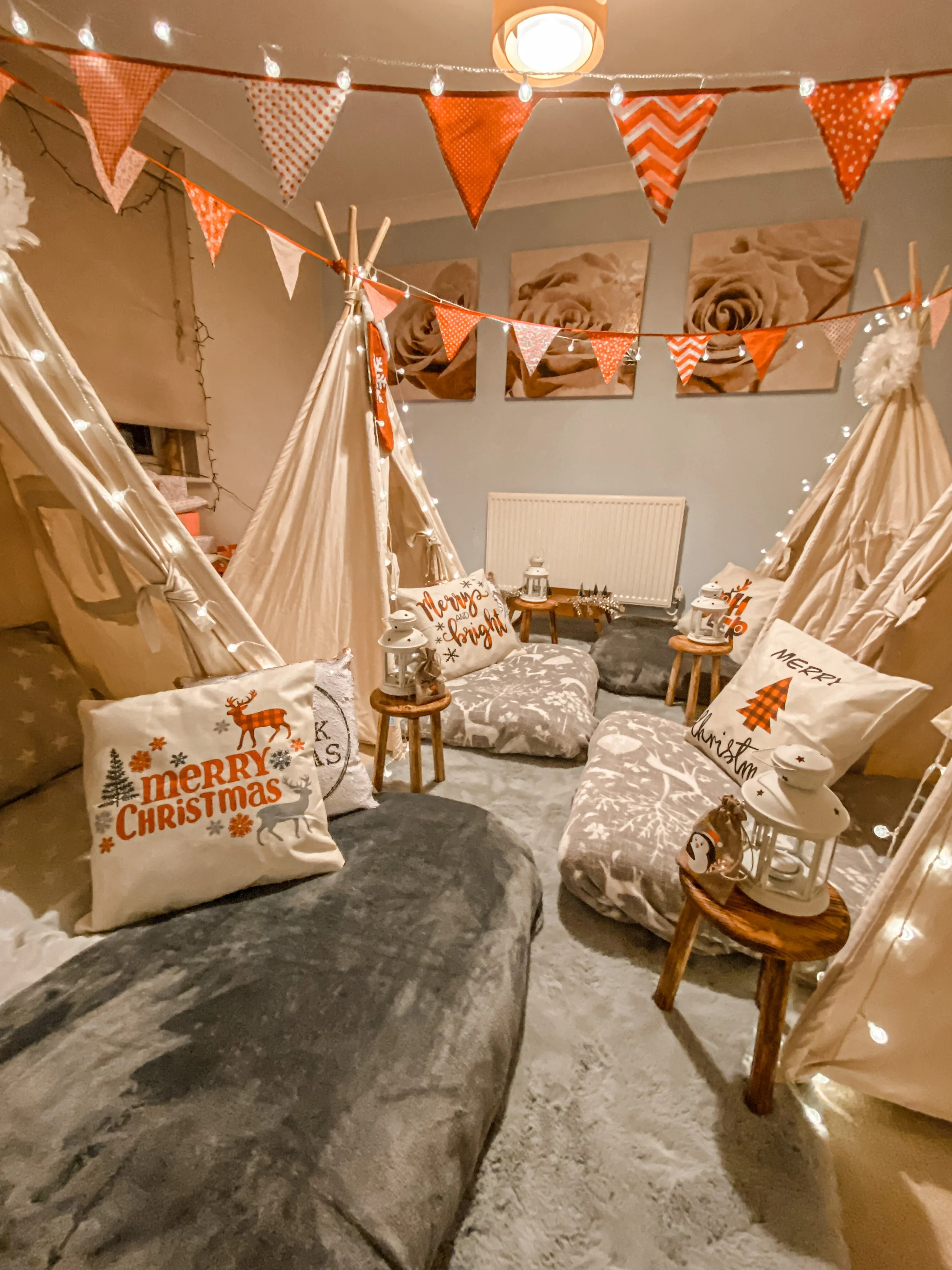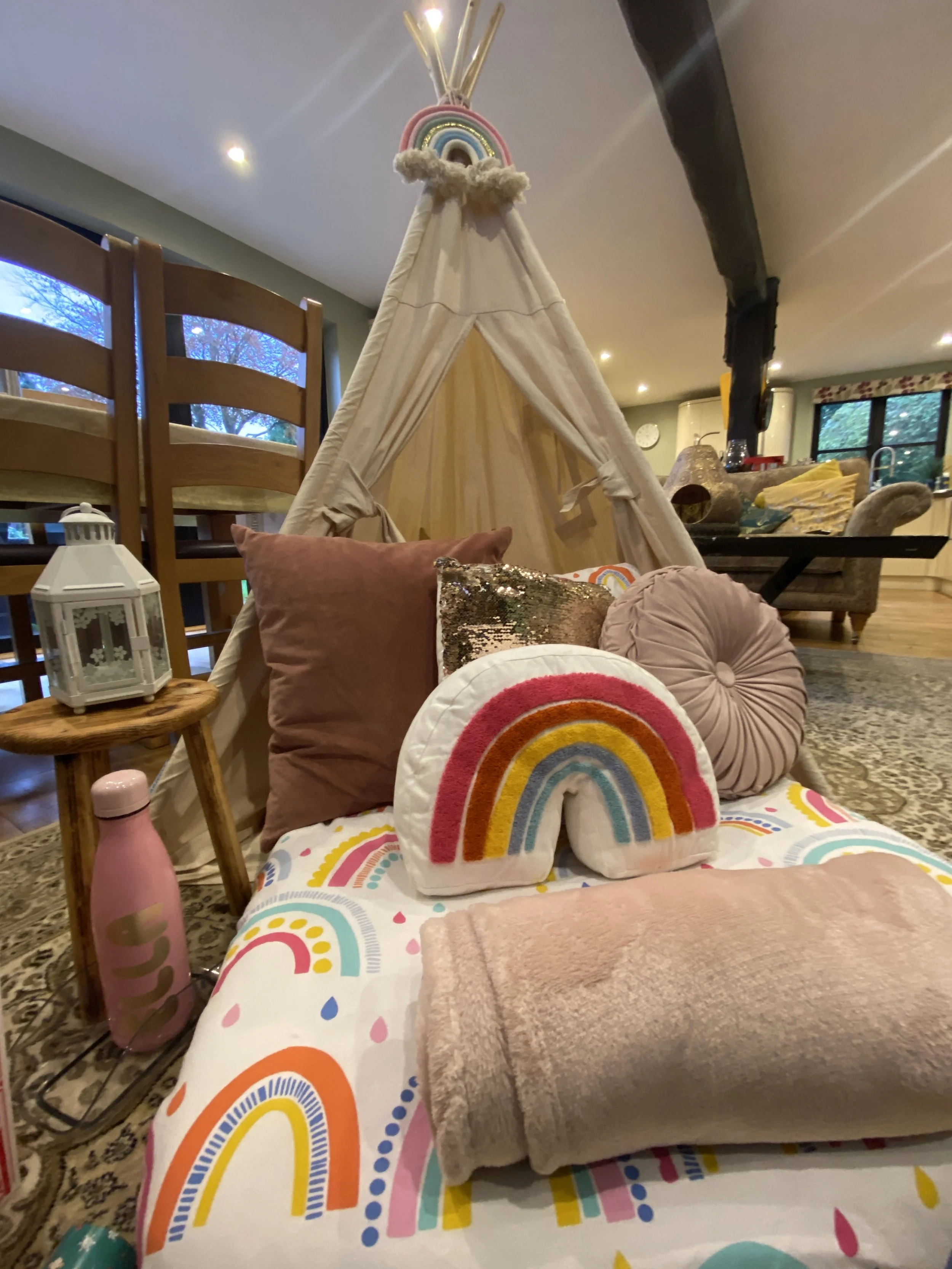 Full Set up of Teepees with foam mattress, full bedding, blanket, bed tray, fairy lights & full decor in your theme of choice.
